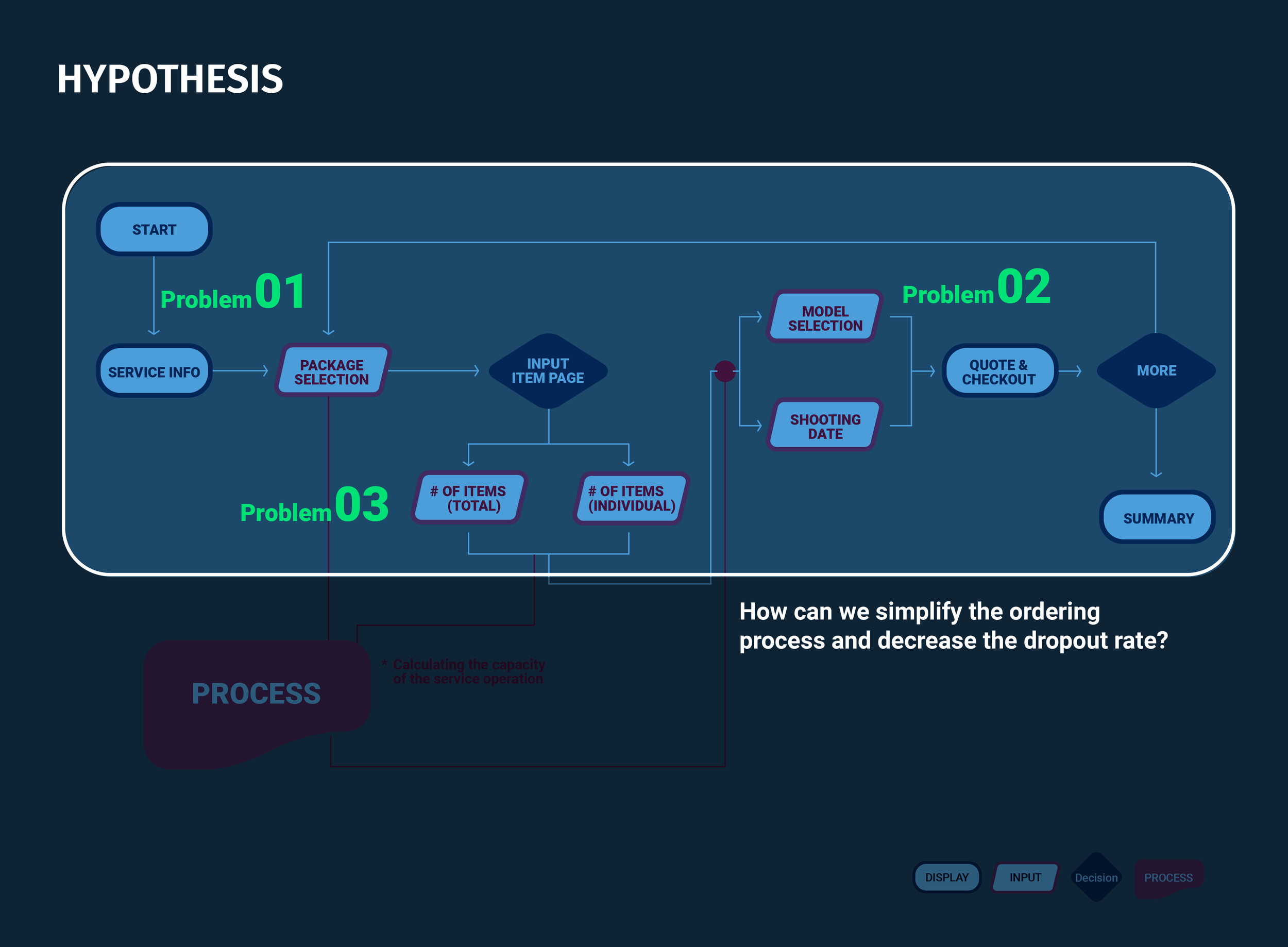 Online ordering for photo studio services was new to the market, so users lacked a shared understanding of terminology, packages, and delivery methods. During a six-month beta, we built a basic analytics system to track button clicks and page drop-offs, then validated insights through customer interviews. This project focused on improving clarity and learnability so first-time users could complete orders without heavy operational support.