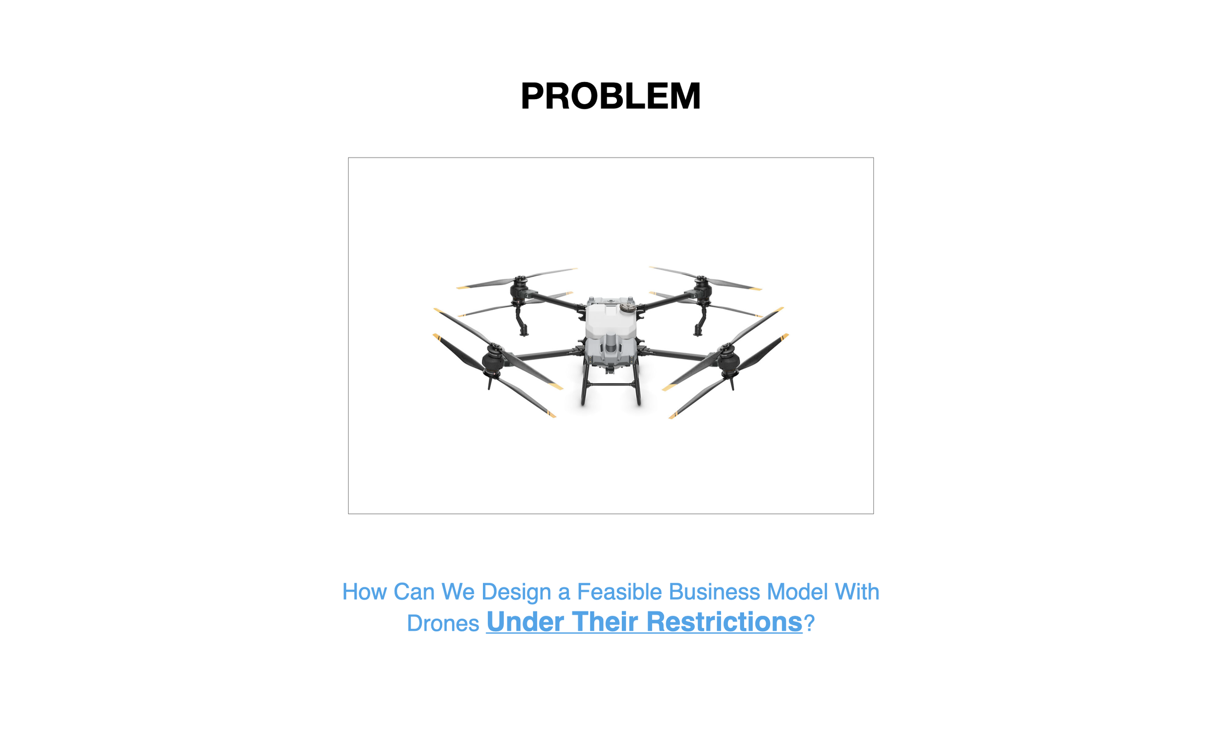 In 2012, commercial drones were just entering the market and were viewed mostly as toys, while facing strict constraints like short flight time, legal restrictions, and social stigma. Within these limitations, what new service and business model could drones enable?