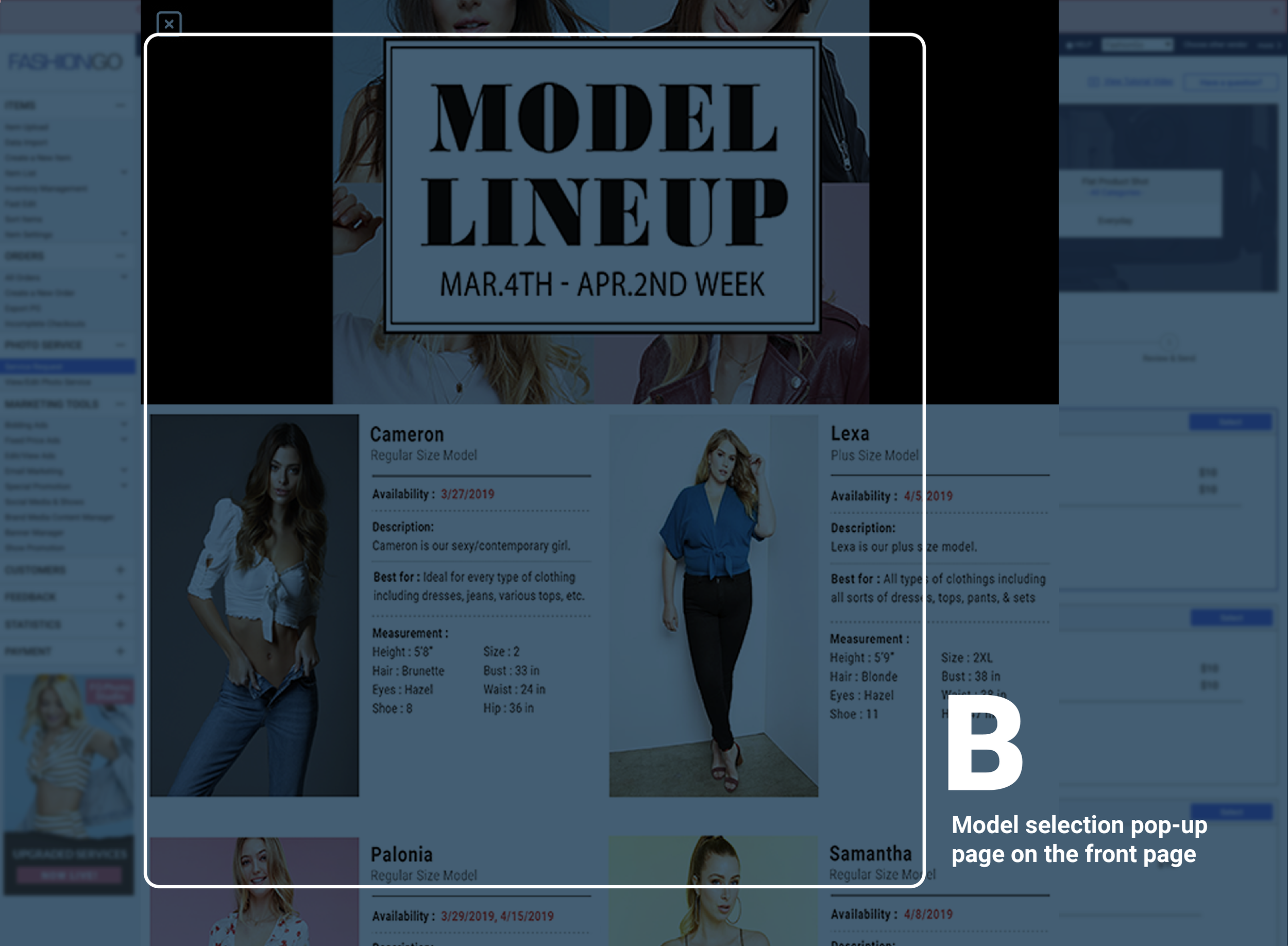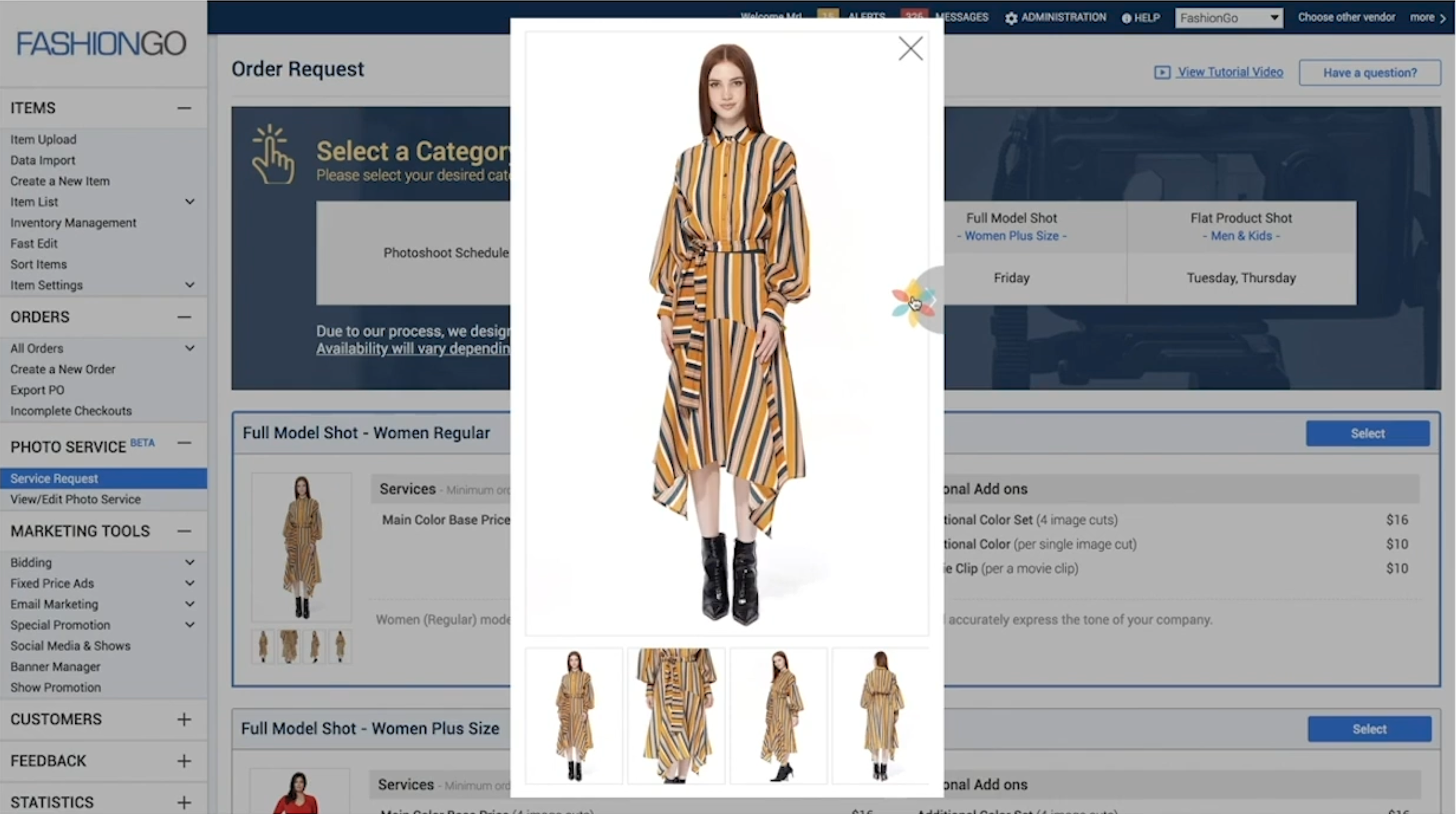 Built and launched FashionGo Photo Studio, a platform-native photography service designed for fashion e-commerce. Sellers could complete the entire flow inside the vendor admin—browse models, select shoot dates, and receive instant quotes—making ordering faster and more predictable. The differentiated value was combining trend-aligned quality with frictionless access and transparent pricing, so premium visuals became attainable for smaller vendors.